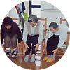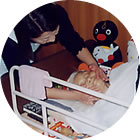 作業療法士のOさんと風船で手のリハビリ。