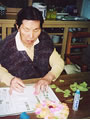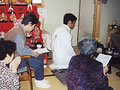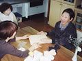 将棋を使ってのドミノ倒し。倒れた瞬間のKさんの満面の笑顔。
