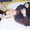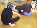 ひっくり返ったわけじゃないのよ。柔軟体操の最中です。体の軟らかさに驚き!
