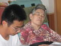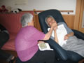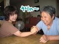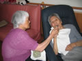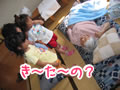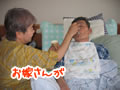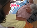 2人仲良くお昼寝。していると思ったら、いつの間にかおばあちゃんの足が枕に・・・