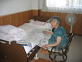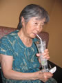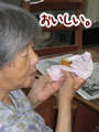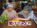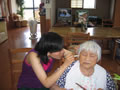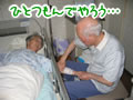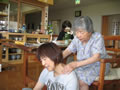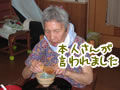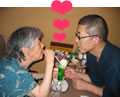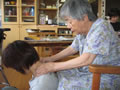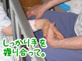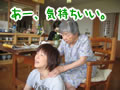 足の薬をスタッフがNさんに塗り終えると、「いつもありがとう。今度は私があんたの肩もんだげる」と言ってくれ、モミモミモミ。