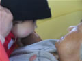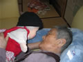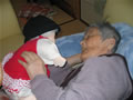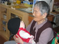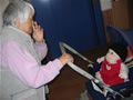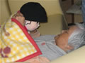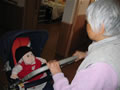 シルバーカーにもたれて、すやすや…。