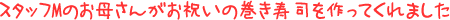 今月お誕生日を迎えられた方は2名です。おめでとうございます。