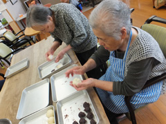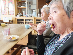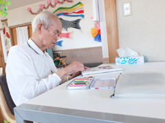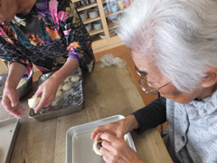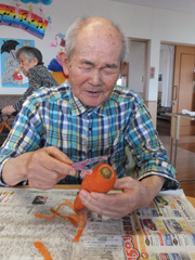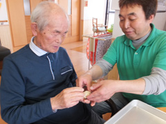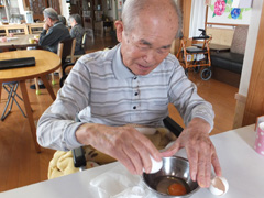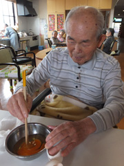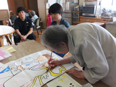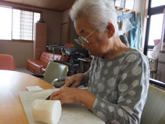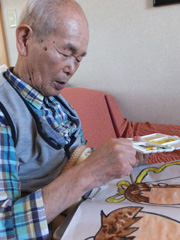 「ココをぬったらええじゃろ?」と手際よくぬっていきます。 |