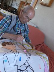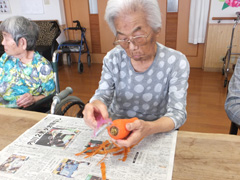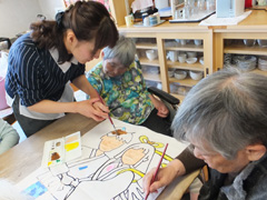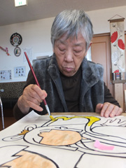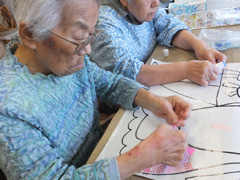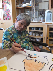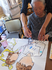 | 「ココをぬったらええの?」と筆を持ってぬりぬり |