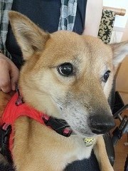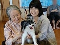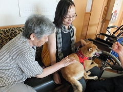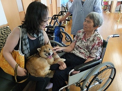 愛犬チャコとふれあっています