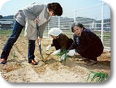庭の畑でも菜園をはじめました。まずはねぎを植えてみました。 |