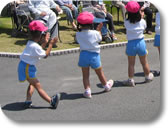 鷹ノ子温泉ではお弁当をいただきながらの芝居見物。5才のちび玉くんに拍手!ルンビニーでは近所の久枝幼稚園の園児たちのかわいいおゆうぎに、またまた拍手!