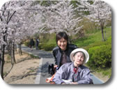 春の陽気の中、きれいに咲いた桜並木をお散歩。