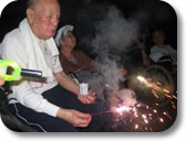 ルンビニーのお庭で花火大会。線香花火や打ち上げ花火、きれいでした。
